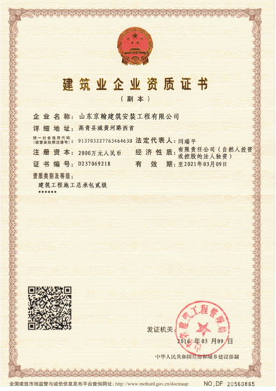 Shandong Tianhan Construction and Installation Engineering Co., Ltd. was established in 2005. It is a subsidiary company of Shandong Hongqiao Thermal Power Co., Ltd., and currently has three levels of general contracting for power engineering construction, installation (repair, trial) Qualifications of the third-level license and the second-level general contracting of housing construction and construction.