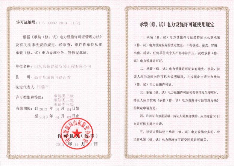 The company has rich experience in power engineering construction, with more than 50 professional and technical personnel. The project construction has the ability to complete an annual output value of 320 million yuan, and has won many honors at the provincial and municipal levels.