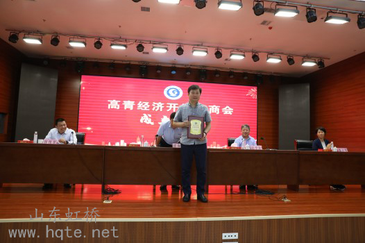 县委常委、统战部部长邵珠泉,开发区党工委副书记、管委会主任赵学民为高青经济开发区商会揭牌。