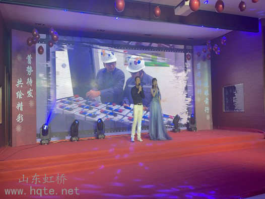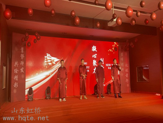 晚会现场以喜庆的中国红为背景,另配企业一年来的丰硕场景,璀璨的灯光以及表演者的精彩演出,营造出虹桥人生机勃勃的企业文化和红红火火的新春气氛。