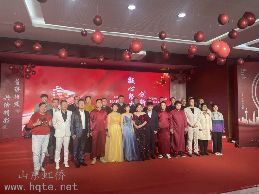 公司领导与演职人员合影留念,2022年元旦晚会在现场观众的欢呼声中圆满谢幕,衷心祝愿虹桥的明天更加美好与辉煌。